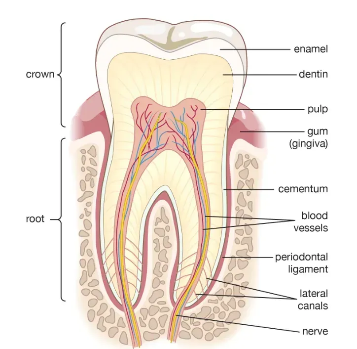 Taking a look at the photo for guidance, this shows the breakdown of how each individual tooth is made up.